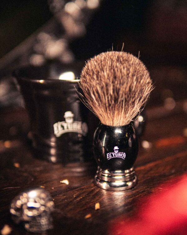 Bowl de ceramina negra, brocha de pelos de tejon.