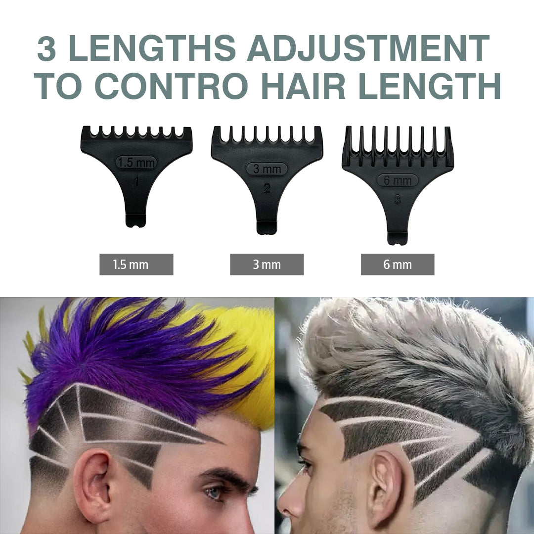 - Incluye 3 peines de precisión (1/16”, 1/8”, 1/4”).